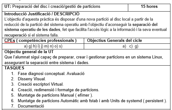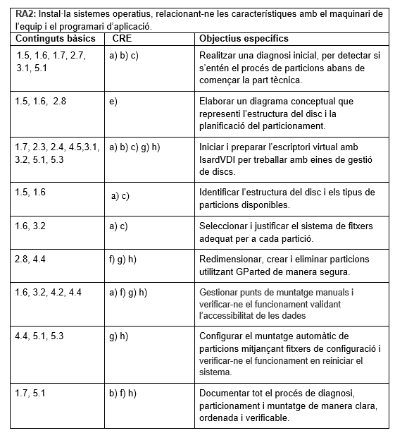 2.8 Planificació de la instal·lació: particions, sistema d'arxius. Selecció d'aplicacions bàsiques a instal·lar. Paràmetres bàsics de la instal·lació.